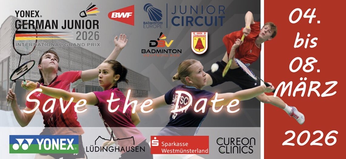 Das Yonex German Junior ist eines der bedeutendsten internationalen Badminton-Jugendturniere der Welt. Es findet erstmalig in Lüdinghausen statt und es werden Nachwuchstalente aus über 30 Nationen erwartet.