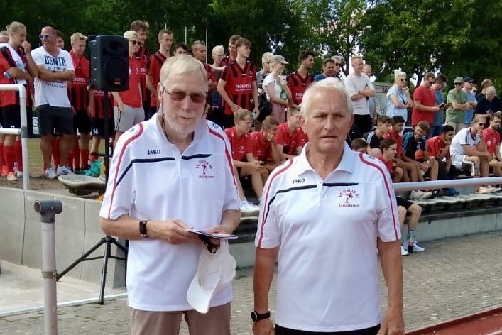 Einerseits werden sich Alfons „Apo“ Baumeister und Helmut „Ali“ Ahlbrand über die Ehrung, die den beiden am heutigen Sonntag, kurz vor dem ersten Saisonspiel der Nullacht-Fußballer, zuteil wurde, gefreut haben. Andererseits werden sie nach dem 0:1 gegen Buldern ein Tränchen verdrückt haben. Schließlich sind beide Ur-Unionisten und dem Verein bis heute eng verbunden.