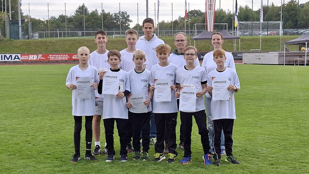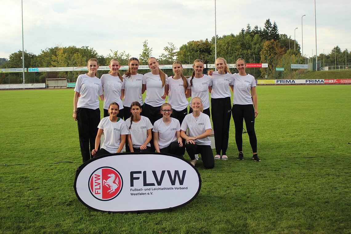 Vor der traditionellen Schlussdisziplin, dem 800-Meter-Lauf, war klar, dass es sehr eng werden würde, da Jula Ehnis (Olfen ) und Helena Mußhoff in einer Disziplin antreten mussten, in der sie sich in den Dienst der Mannschaft stellten und somit nicht zu den Spezialistinnen zählten. Doch ähnlich wie Leo Neugebauer bei der WM in Tokio holten die beiden Mädchen in ihren jeweiligen Läufen alles heraus, um den Vorsprung ins Ziel zu retten. Am Ende kamen beide mit neuen Bestzeiten im Ziel an. Ehnis gewann ihren Lauf mit 2:45,00 min und Mußhoff, die in den stärkeren Lauf eingeordnet war, kam nach einem tollen Endspurt auf 2:44,54 min. Nach minutenlangem Warten war es dann klar, die Startgemeinschaft hatte Bronze mit genau 6931 Punkten geholt. Am Ende hatte man einen Vorsprung von genau 9 Punkten vor dem LC Paderborn und knapp 50 Punkten vor Schalke 04.