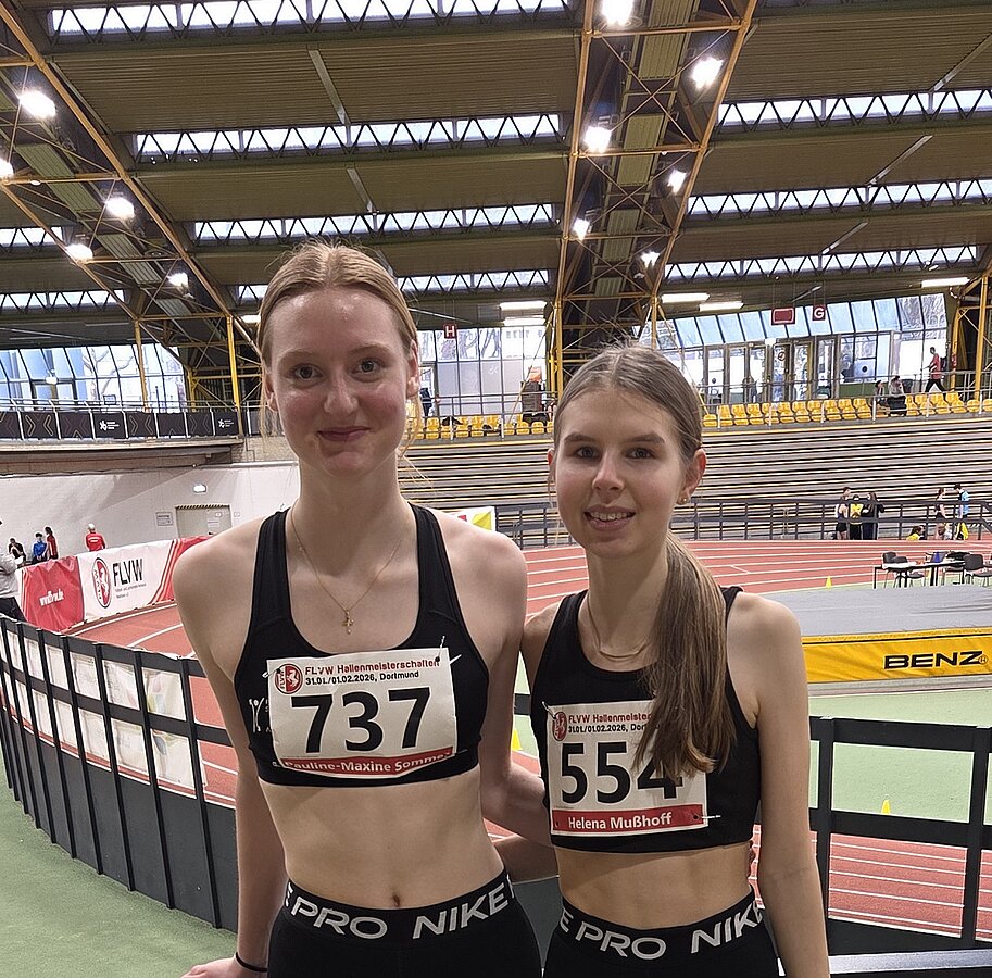 Dabei stand dieses Mal besonders Helena Mußhoff ( U 18 ) im Vordergrund. Zuerst ging es über 60 m Hürden an den Start. Hier verpasste sie nur um einen Platz die beiden Finalläufe konnte sich aber mit 10,04 sek immerhin über eine neue Bestzeit freuen. Besser lief es dann in ihrem allerersten Lauf über die 400 Meter. Qualifiziert hatte sie sich mit der letztjährigen Bestzeit über 300 Meter in der U 16 und da sie in der Wintersaison bisher keinen 400-Meter-Lauf bestritten hatte, galt es die neue Strecke erstmal anzutesten. Dabei befolgte sie die vorher abgesprochene Renneinteilung perfekt, lag nach 150 Meter vorne, sodass sich die Konkurrenz hinter ihr einsortieren musste. Nur die Schalkerin Elisa Komorniczak gelang es dann noch vor der dritten Kurve Mußhoff zu überholen und dann schnell einen Vorsprung herauszulaufen, den sie bis zum Ende auch hielt. Mußhoff selbst lief couragiert ihr Tempo und konnte mit 64,38 sek eine erste Duftmarke setzen. Im zweiten Lauf, in dem die Läuferinnen mit schnelleren Bestzeiten gesetzt waren, konnten dann nur noch drei weitere Läuferinnen, die alle dem älteren Jahrgang der U 18 angehören, Mußhoffs Zeit unterbieten, sodass ein starker fünfter Platz am Ende heraussprang.